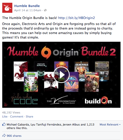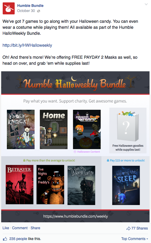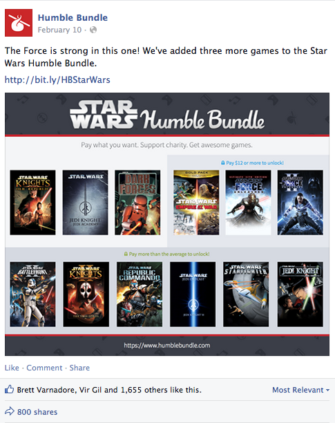 One of our greatest strengths at Humble was our community. We had hundreds of thousands of followers on Facebook and Twitter, due to a mixture of deals and style.