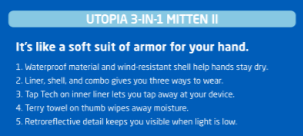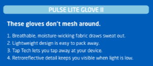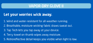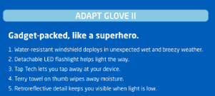 The idea was to list out key selling points underneath a quirky line that conveyed the brand’s “Run Happy” voice. I’ve included a proof to show you an example of the layout and then the copy for each of the gloves.