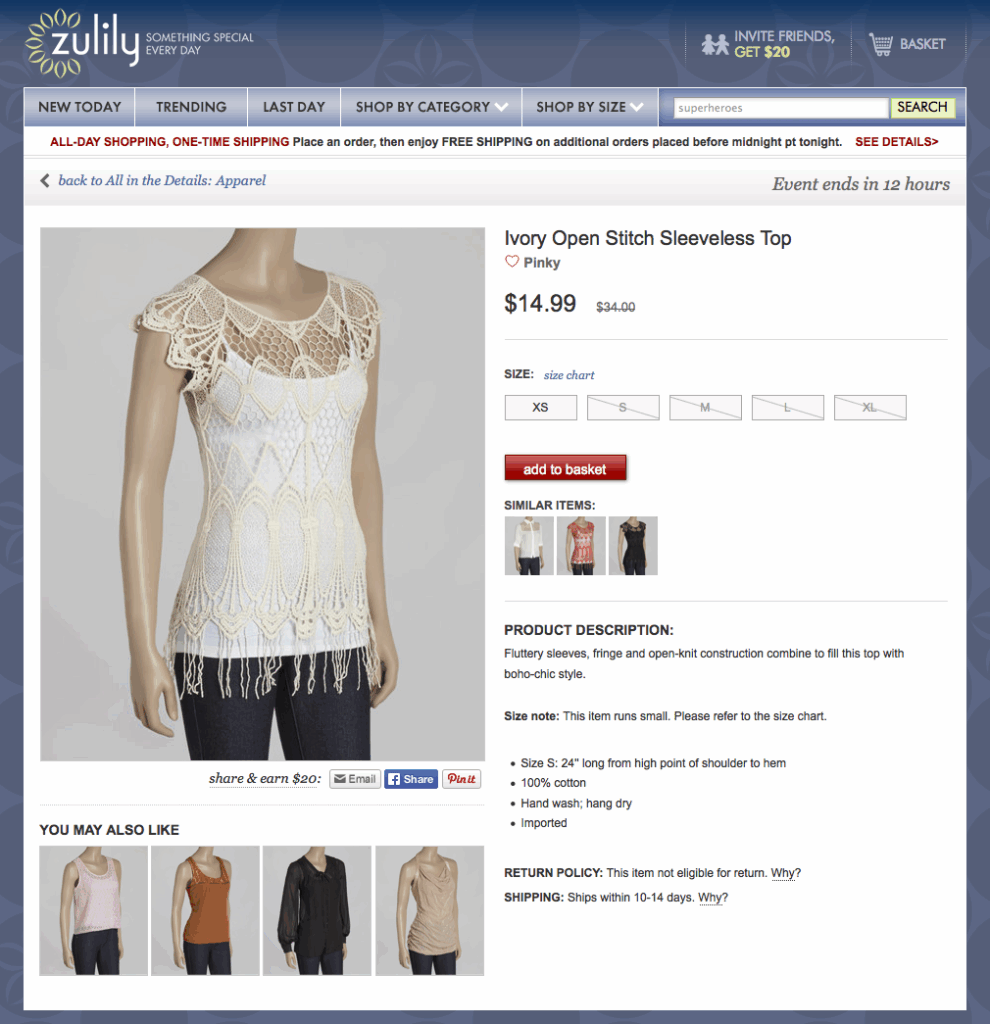 Was it because I dreamed of being a fashion writer? Not exactly. The reason was more practical: I had seen several product description gigs that required fashion experience, and mine was minimal. Zulily, on the other hand, considered my daily deal experience as valuable as fashion writing experience. So I jumped at the chance to work for them and learn the terms of the trade: from “boatneck tops” to “ombré fabric.”